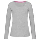 Fitted long sleeve T-shirt for women, with fashionable length made of a soft and sleek cotton-elastane-blend with wide V-neck drop and contrast neck tape.