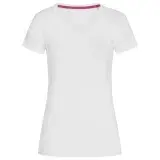 Fitted V-neck T-shirt for women, with fashionable length made of a soft and sleek cotton-elastane-blend with contrast neck tape.