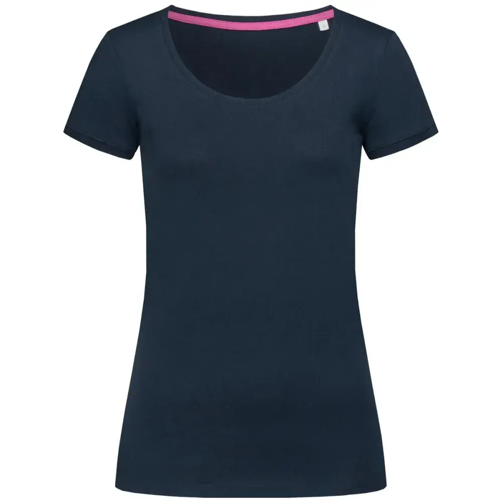 Modern T-shirt for women, with fashionable length and wide neck drop made of extra smooth combed ring-spun cotton.