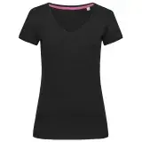 Modern T-shirt for women, with fashionable length and wide V-neck drop made of extra smooth combed ring-spun cotton.
