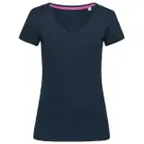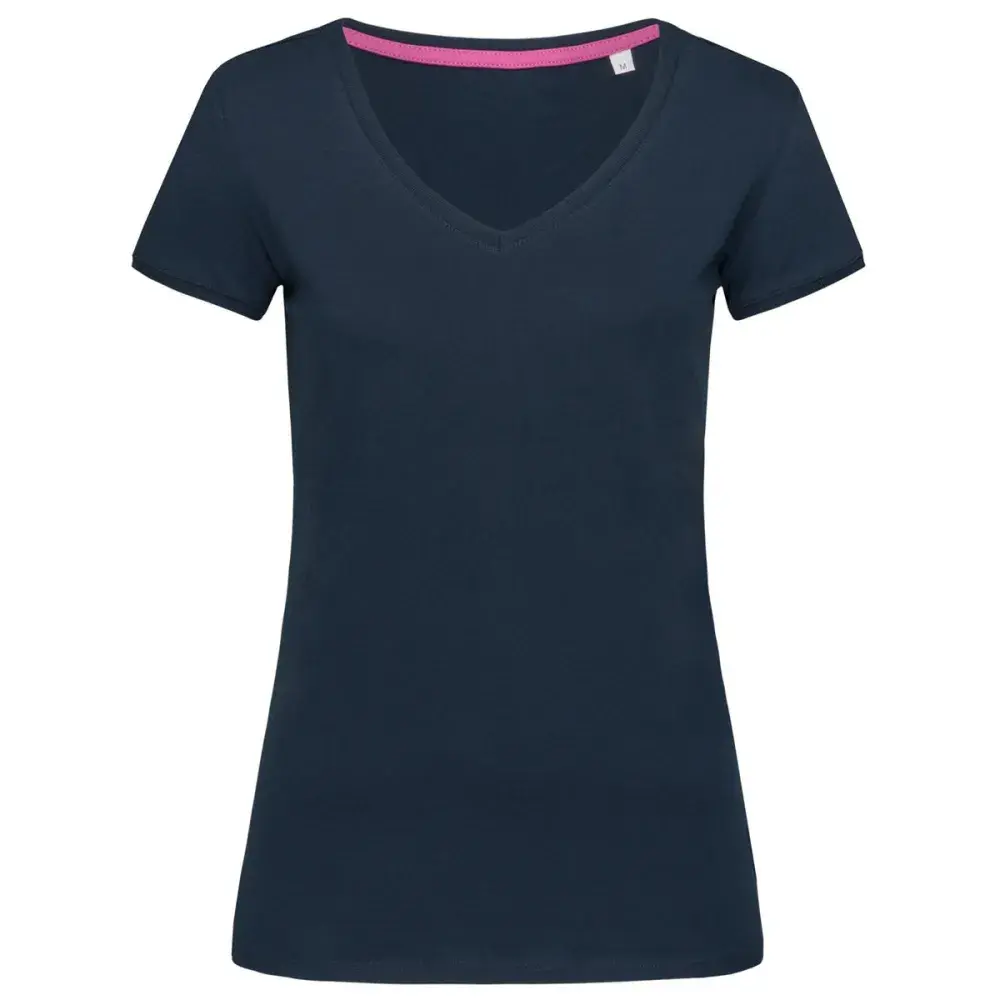 Modern T-shirt for women, with fashionable length and wide V-neck drop made of extra smooth combed ring-spun cotton.
