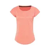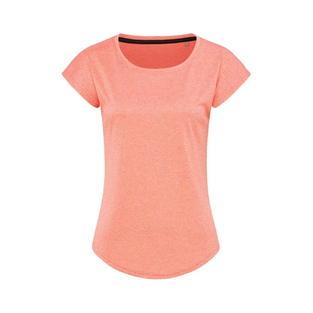 Eco-friendly Sports T made from recycled material. Modern with a heathered look. Especially flattering shape for ladies with overcut sleeves and a rounded hem.