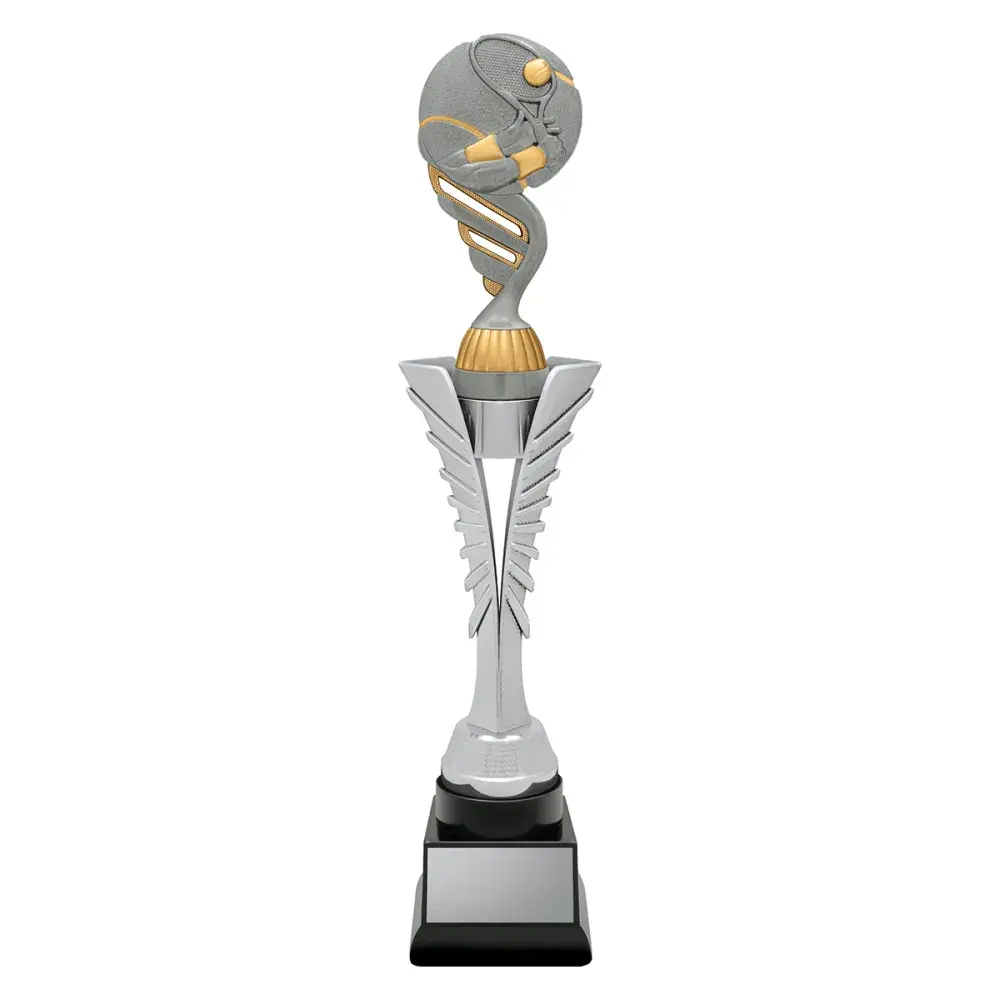 Silver Spear trophies showcase a brilliant top on a distinctive "spear" riser - the top finished in antique silver. Available in 3 sizes.