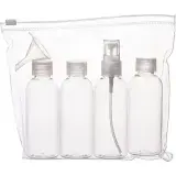 Zip-top resealable pouch for TSA-friendly travel. Includes three 80mL refillable bottles, one 80mL refillable spray bottle and mini funnel. Bottles not available for imprint. Capacity of approximately 13L.