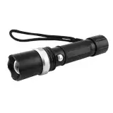 Danube aluminium torch. Twist action metal ring with three adjustable beam focus settings. Requires AAA batteries which are not included, otherwise this item can use the rechargeable 4800mAh battery which is included with power cord for recharging. Packed in black gift box which can also be printed.