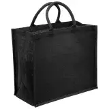 Custom Eco Jute Tote with wide gusset Black,Black