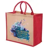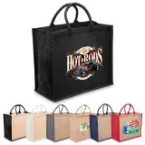 The Eco Jute Tote bag great for a wide variety of applications such as beachgoing, picnicking, gifting, grocery shopping, storage and more. An extremely strong, durable fabric with eco-friendly qualities, the Eco Jute Tote bag is a good choice for promotional tote bags.