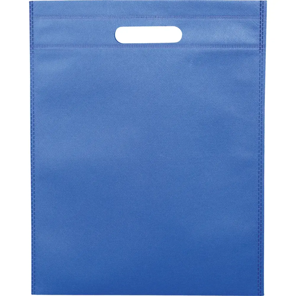 Open main compartment. Die-cut handle. Heat-sealed construction with slim design. Reusable and a great alternative to plastic bags or for tradeshows and conventions.