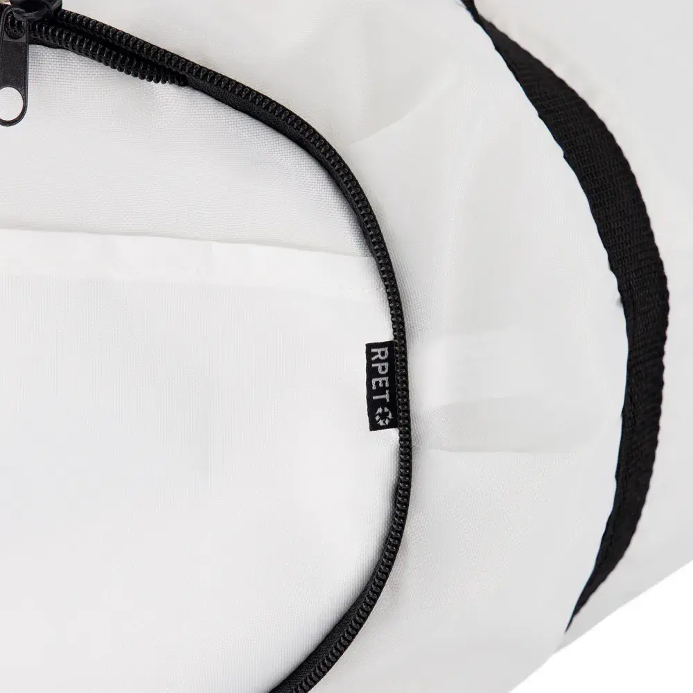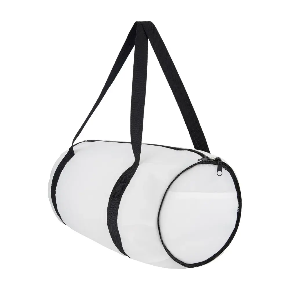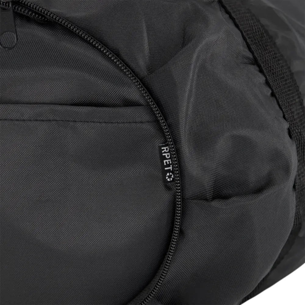 The Gather Duffle Bag is a lightweight, versatile travel essential designed for convenience on the go. Made from RPET, it offers a modern option without compromising on practicality. Featuring black nylon webbing handles that wrap securely around the body, two external pockets for quick-access items, and a reliable zip closure, this duffle is built for everyday use. When not in use, it cleverly folds down into its own compact round pouch—perfect for stashing in your luggage or car for when you need an extra bag. Available in Black, Blue, or White, with decoration options on the bag pockets for bold brand visibility.