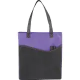 Open main compartment with double 26 inch handles. Front pocket. Two pen pockets. Reusable. Great for tradeshows and conventions.