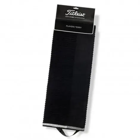 This premium golf towel from Titleist is made using cotton terry towelling, using full-loop terry cloth for maximum absorption. Measuring 500mm x 1000mm, the towel has a handy loop for attaching to a golf caddy and is the perfect companion on the green to keep gear clean and dry. The towel is presented on a Titleist branded heading card and features the Titleist logo on a sewn-in label.