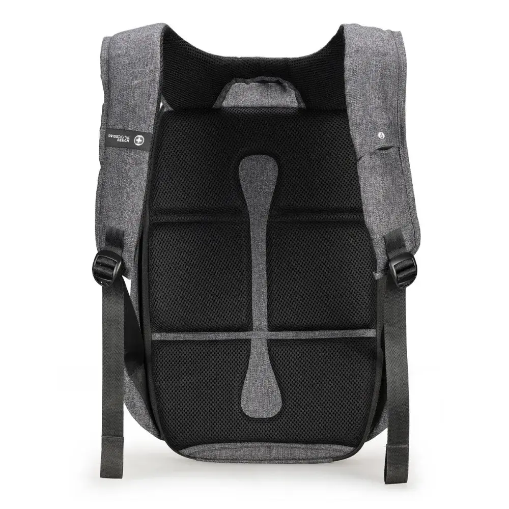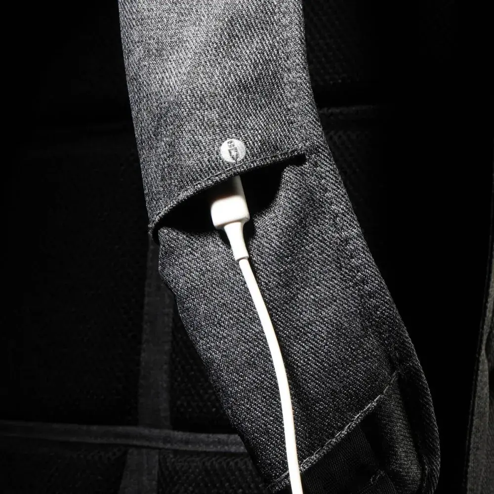 A stylish black, anti-theft rucksack with grey accents and an exceptional design.