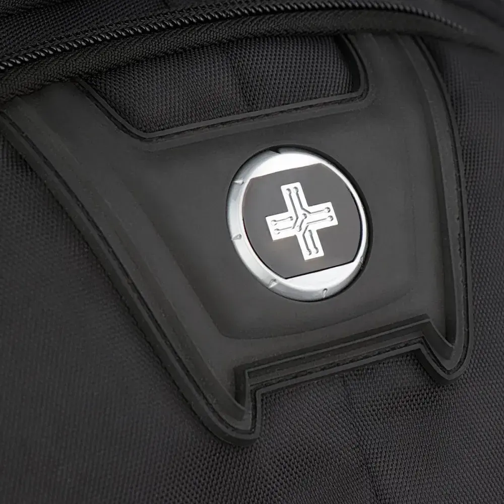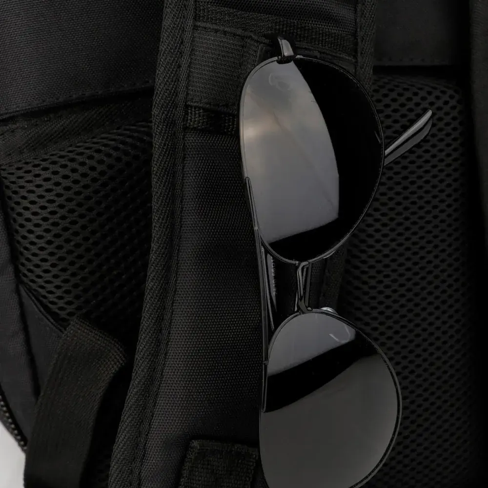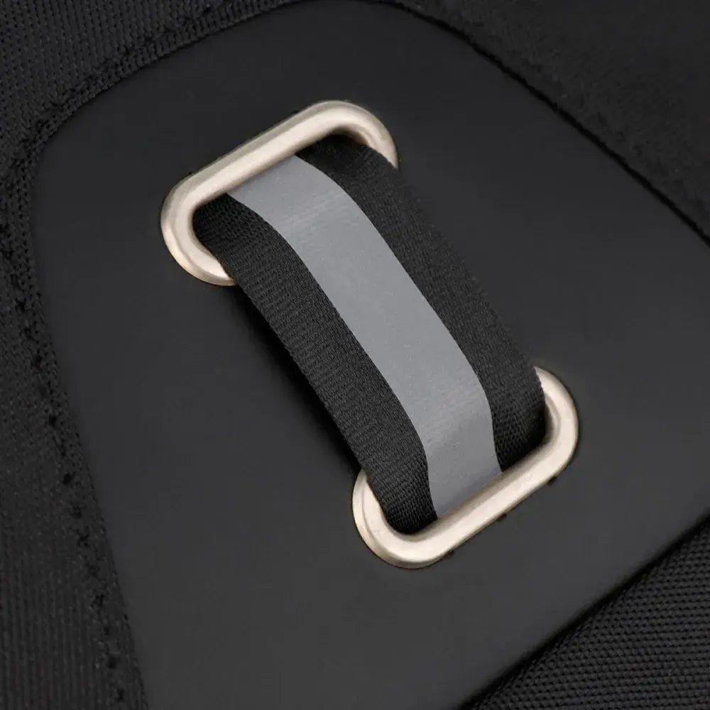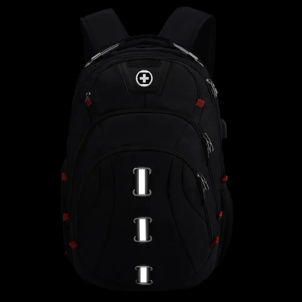 The Pixel backpack is a sleek black backpack with reflectors in the front. It is perfect for students, professionals, and travelers.