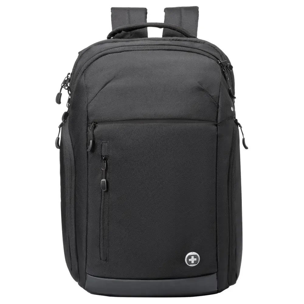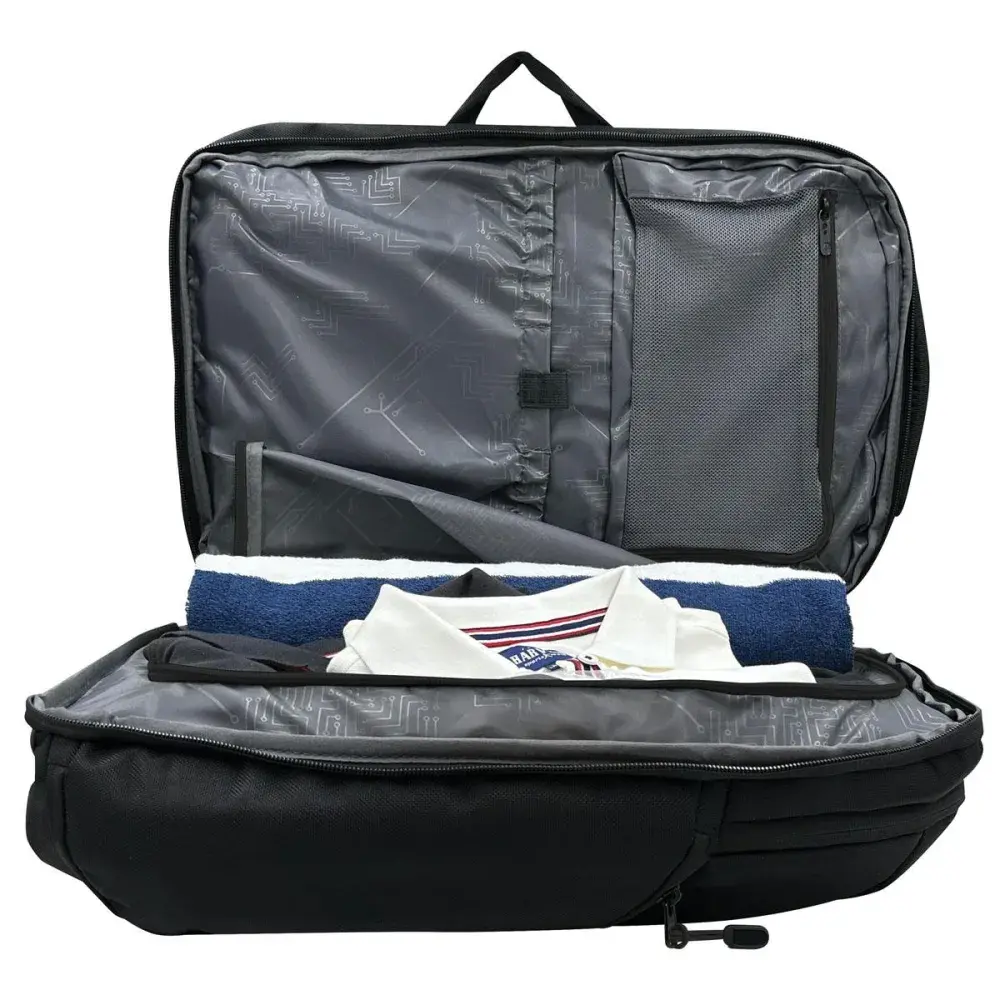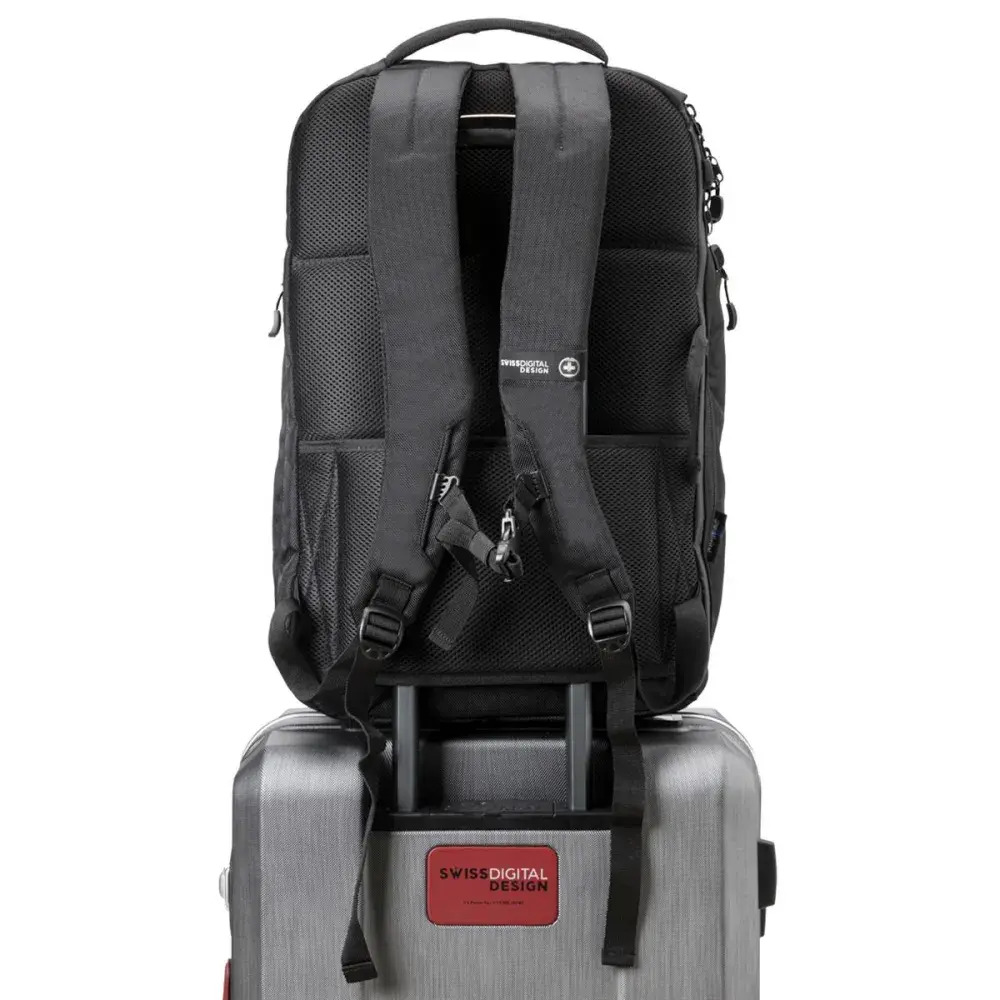 The Swissdigital Stealth Java takes everything you loved about the original Java and elevates it to a whole new level. This 45L powerhouse combines sleek all-black styling with enhanced functionality.Engineered from durable materials and featuring a dedicated 16" laptop compartment, RFID protection, and a patented smart USB port, the Java Stealth keeps your gear powered, protected, and perfectly organised. Comfort is built in with S-curve ergonomic shoulder straps and breathable air-mesh padding, while thoughtful additions like an insulated bottle pocket, shoe compartment, and trolley sleeve ensure it adapts to every journey.With expanded decoration areas and its refined all-black finish, the Java Stealth is not just built to perform, it’s built to represent any brand with bold sophistication.