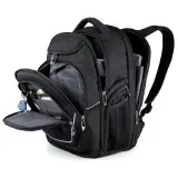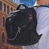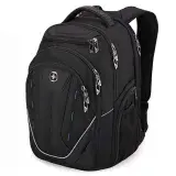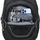 A large backpack with light blue accents. The bag is perfect for students and professionals. With 15 individual compartments, it offers an incredible amount of space to store and organize items, in addition to its other smart features.