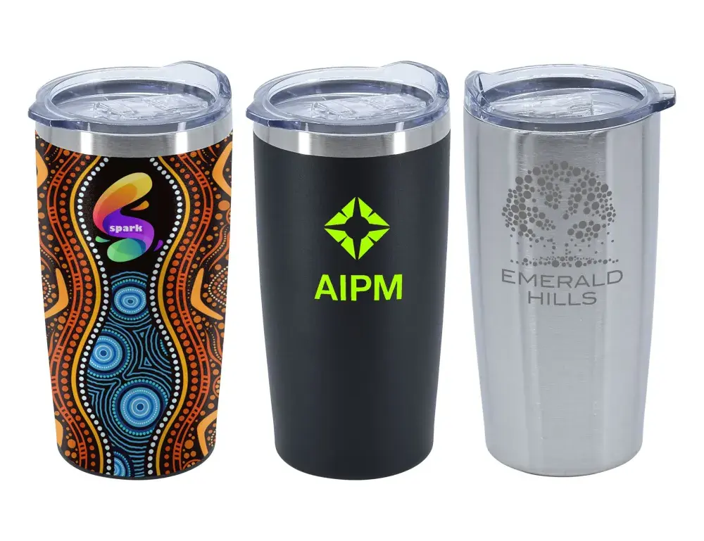 If top of the range is important, then check out 500ml Seville Double Wall Mug. 100% BPA free, it features a powder-coated outer (black), pro-grade 18/8 double wall vacuum stainless steel construction, unique copper lining (designed to keep drinks hot or cold for hours) and clear acrylic lid with ultra-glide sliding tab. Available in powder-coated matt black or natural stainless steel. Supplied in a black gift box.