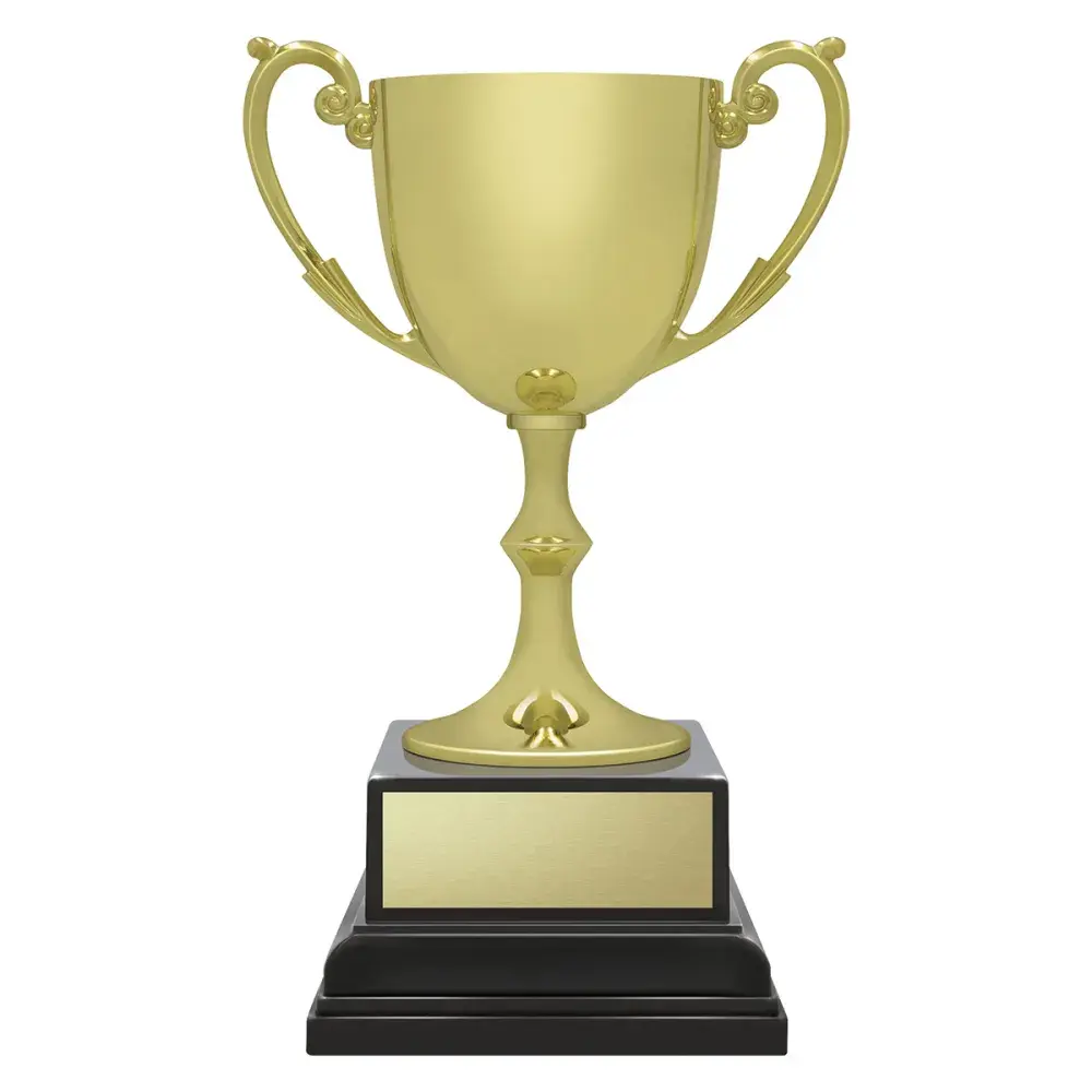 Series of impeccable cups assembled on classic black bases for engraving purposes. Universal design of award to recognise achievement at your event. Multiple sizes - gold or silver.