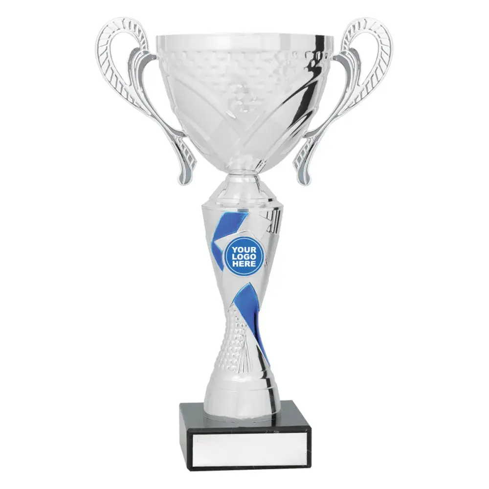 The Silver & Blue Trident series of cups present stylish trophies over a number of sizes with prominent space for your logo.