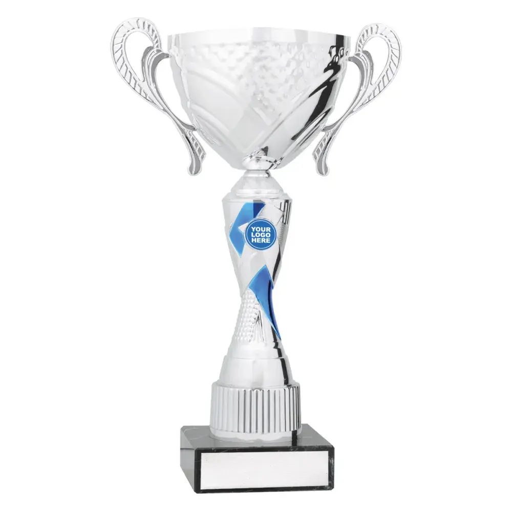 The Silver & Blue Trident series of cups present stylish trophies over a number of sizes with prominent space for your logo.