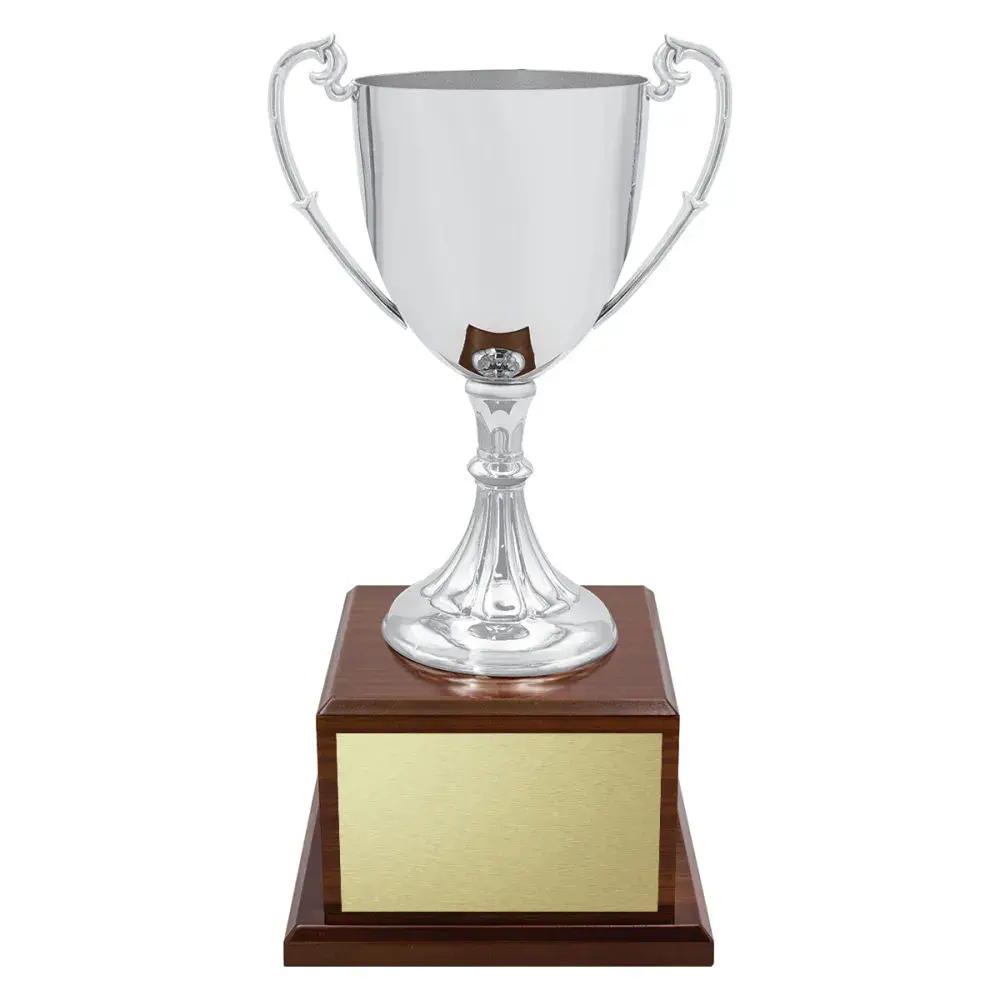 Traditional Silver Cups ideal for that prestige award - substantial nickle plated, engravable cups available in 5 significant sizes. The range also features premium timber bases for your engraving if required.