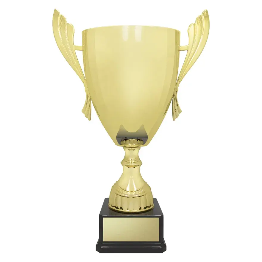 Versatile trophy cup design well suited to range of events and presentations. Gold metal bowls with prestige black marble bases. Lids to suit.