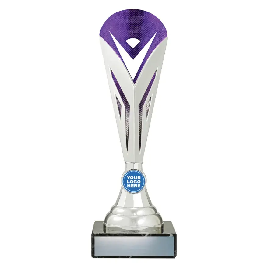 Cyclone Cups offer a fantastic range of trophy cups with innovative style and central space for your custom logo. Different vibrant colour combinations available.