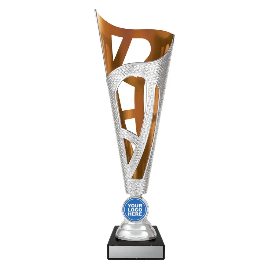 Cyclone Cups offer a fantastic range of trophy cups with innovative style and central space for your custom logo. Different vibrant colour combinations available.