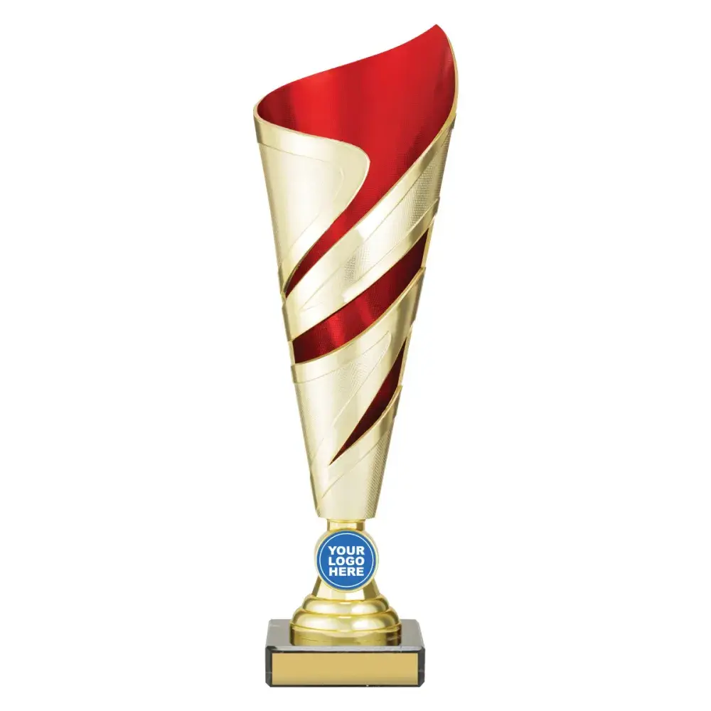Cyclone Cups offer a fantastic range of trophy cups with innovative style and central space for your custom logo. Different vibrant colour combinations available.