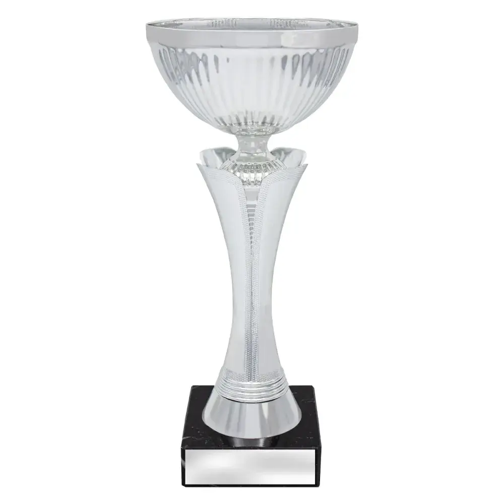 Stylish presentation cups with classic silver finish with metal bowl and prestige marble base elements.