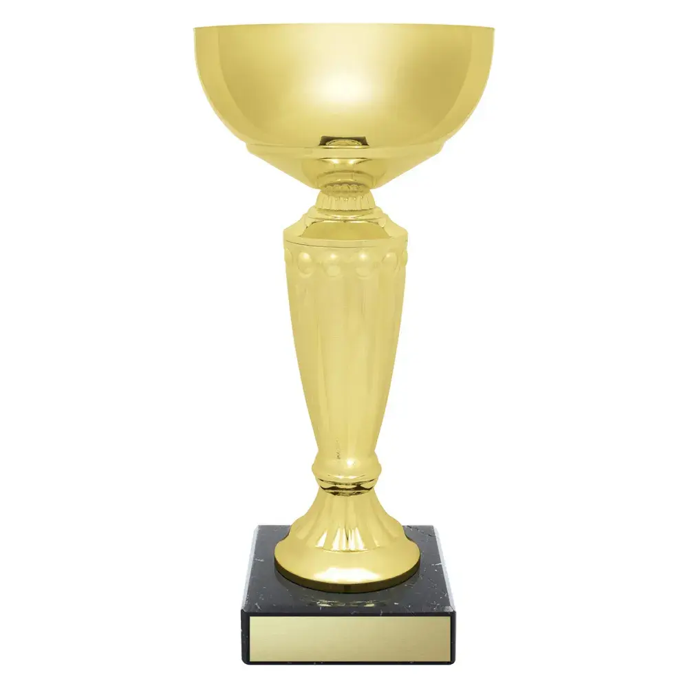 Elegant & classic line of trophy gold cups with prestige black marble. Available in different sizes.