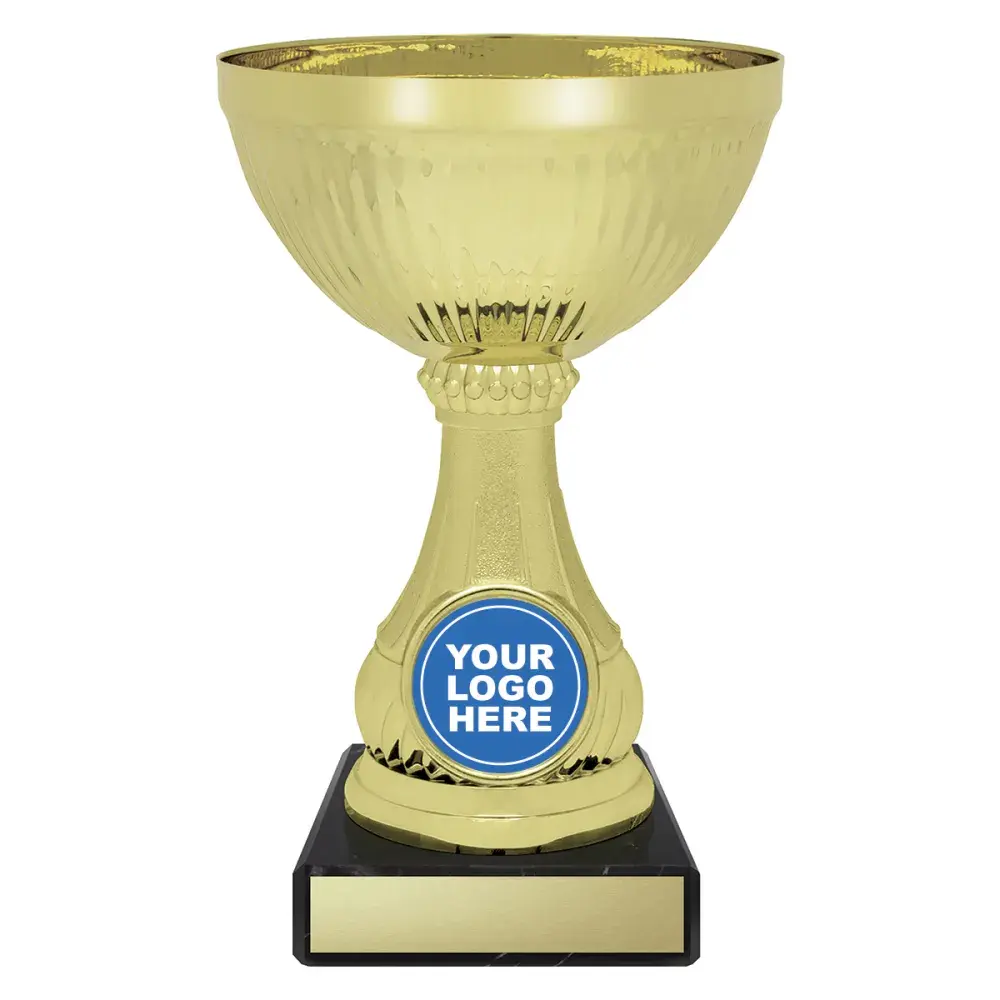 Gold cups present stylish metal bowls and classic marble bases over 4 convenient sizes. A universal and affordable design that is well suited to many different events and presentation. This series of awards is perfect to present your custom logo insert.