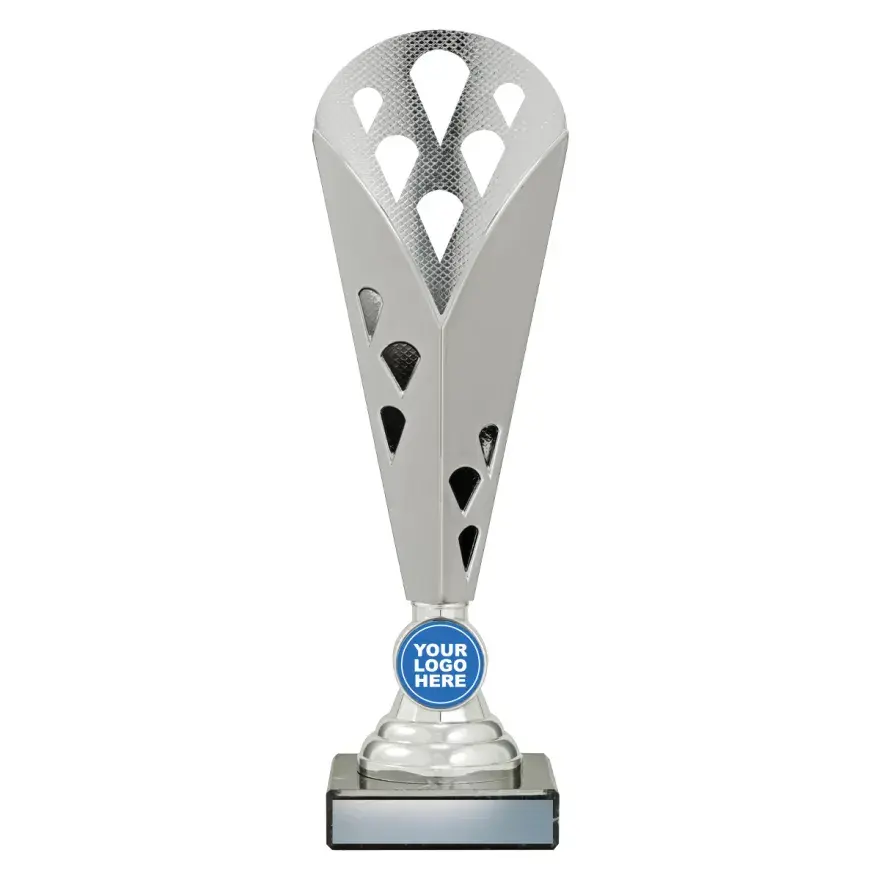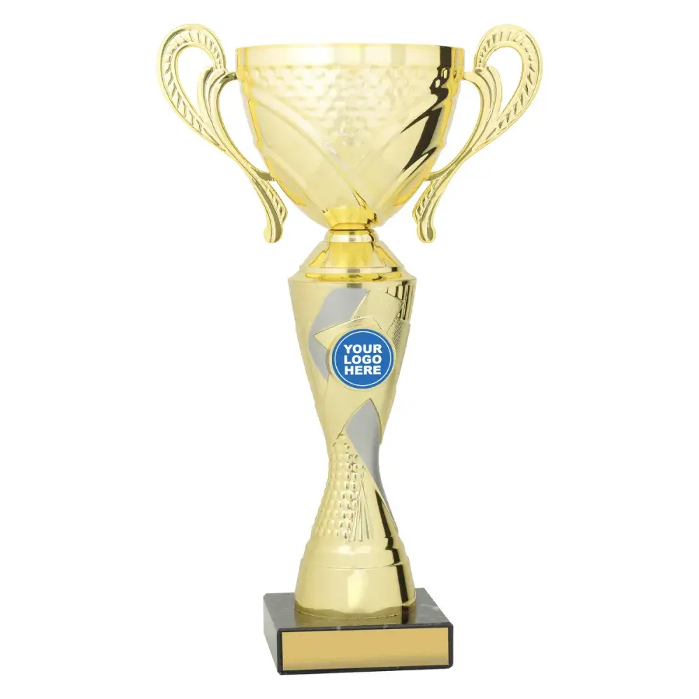The Gold & Silver Trident series of cups present stylish trophies over a number of sizes with prominent space for your logo.