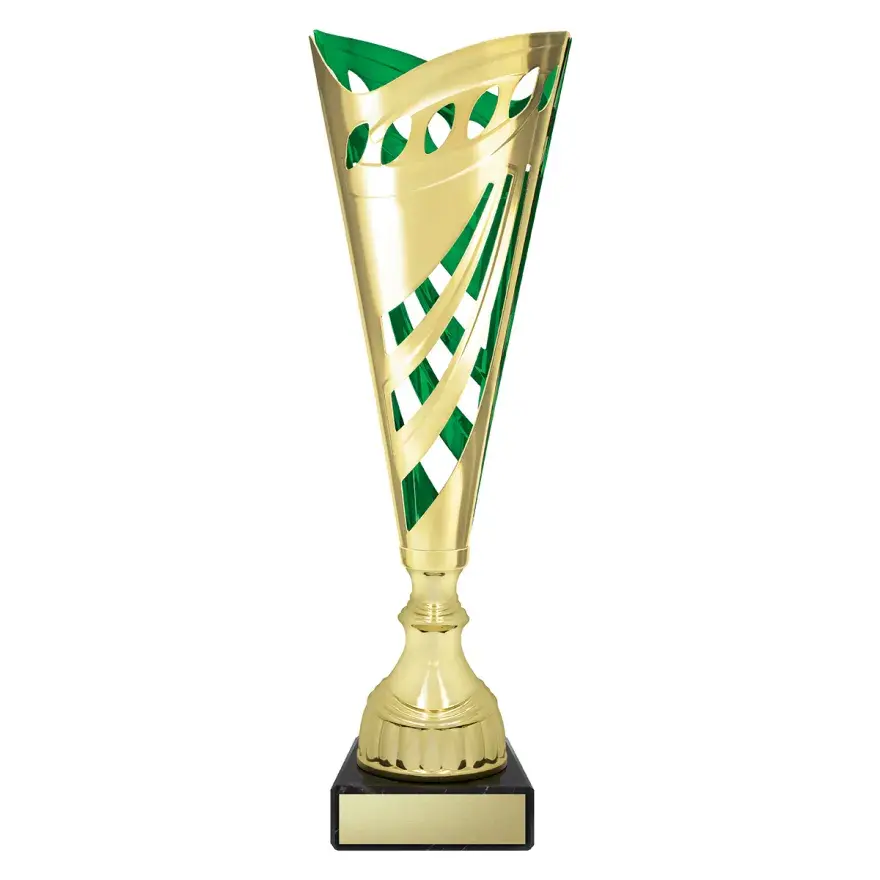 Gold & black trophy cups offer a different design for your event trophies. Multiple sizes on offer to cover different award categories.