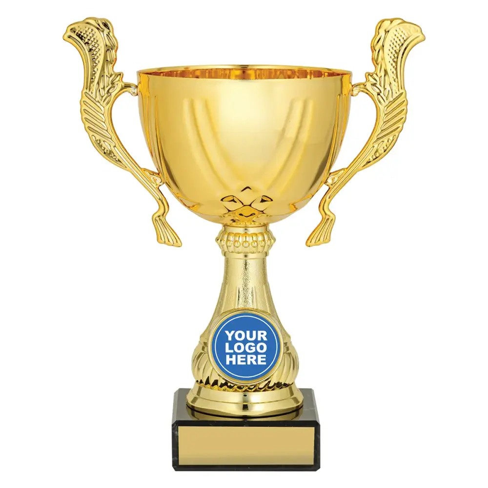Gold cups present stylish metal bowls and classic marble bases over 4 convenient sizes. A universal design that is well suited to many different events and presentation. This series of awards is perfect to present your custom logo insert.