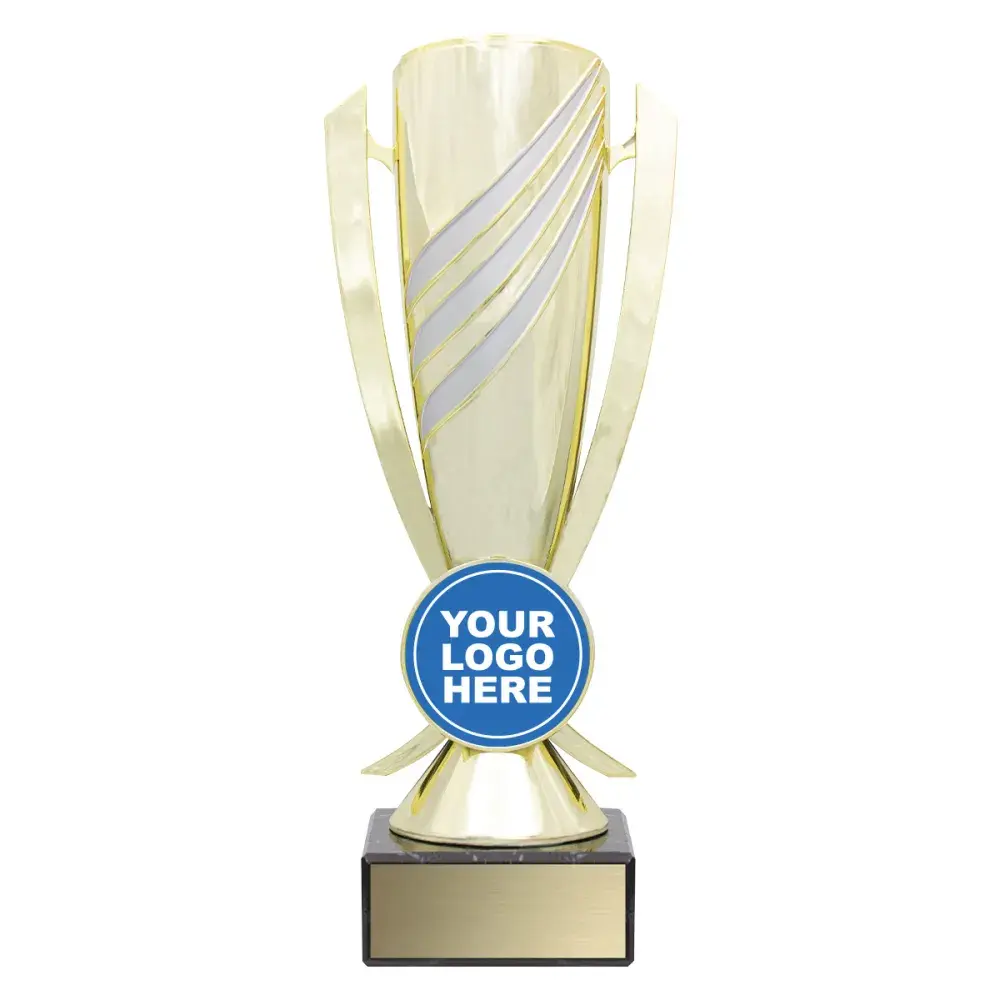 Simple yet effective trophy - iconic cup design with prime position for your 50mm logo.