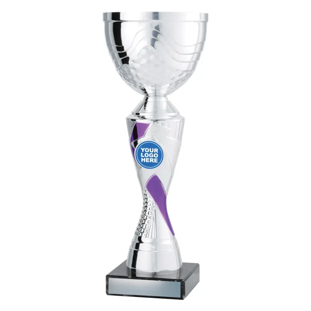 Trophy cups always a great idea to recognise the efforts of your award winners. The Trident series features an attractive silver & purple design and classic European marble. Include your 25mm insert if required.