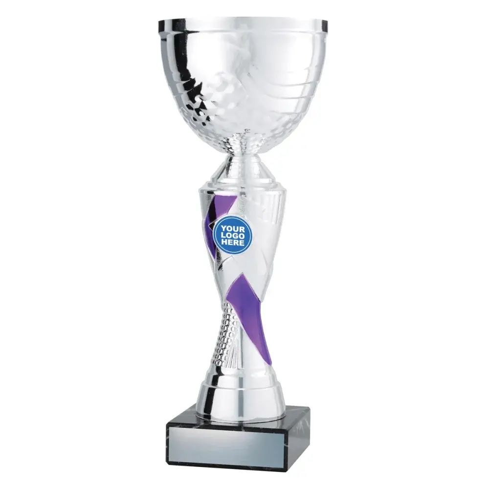 Trophy cups always a great idea to recognise the efforts of your award winners. The Trident series features an attractive silver & purple design and classic European marble. Include your 25mm insert if required.