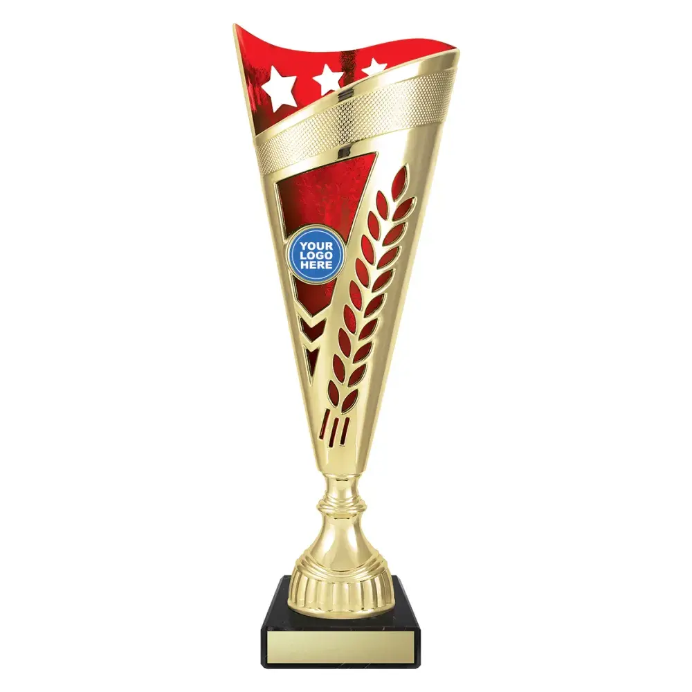 Awesome set of trophies with unique design and colour profile - the Starsail offers prominent space to your custom logo over number of sizes.