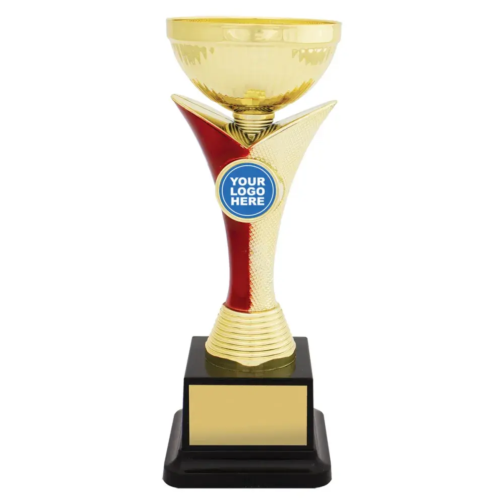 Stylish Venus design provides central position for your insert with vivid red and gold colour elements. Available in 3 great sizes.