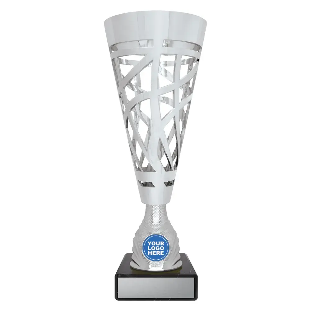 Super interesting design of trophy with swirling design plus great space for your custom insert. The Serafino trophies are available in gold or silver.
