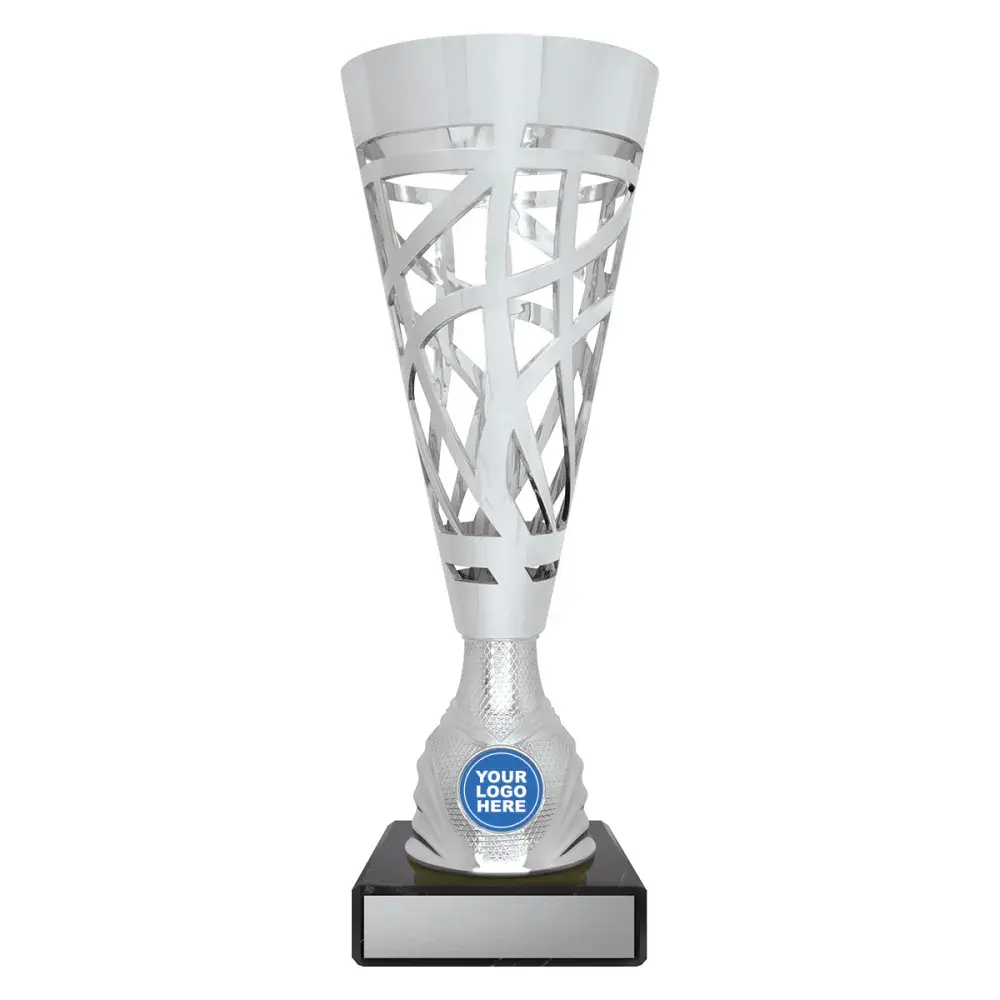 Super interesting design of trophy with swirling design plus great space for your custom insert. The Serafino trophies are available in gold or silver.