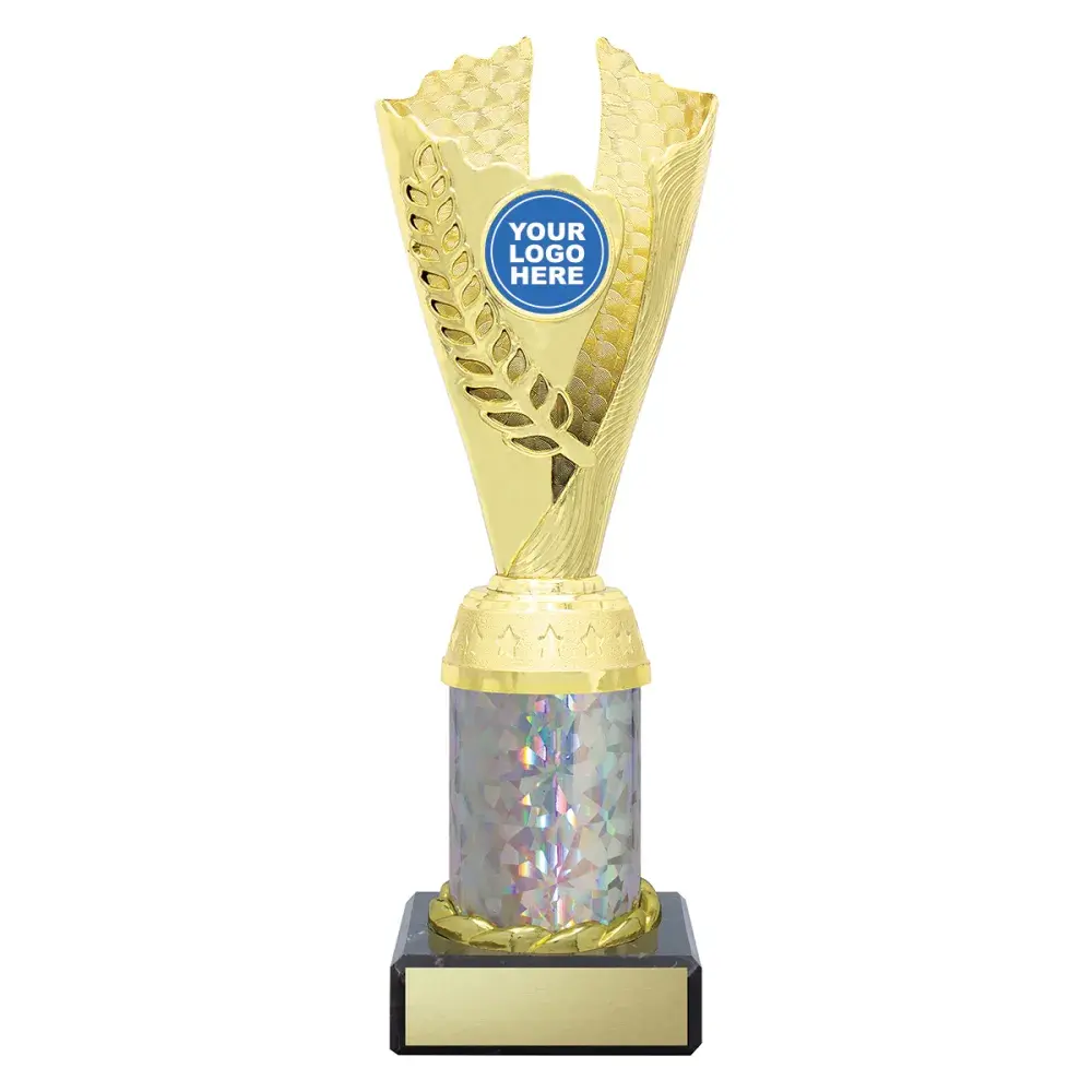 Visually stunning design of cup trophies with central space for your centre insert. Choose from multiple colour combinations to best suit the trophies for your event or competition. Iconic wreath cup celebrates the achievements of your award winners.