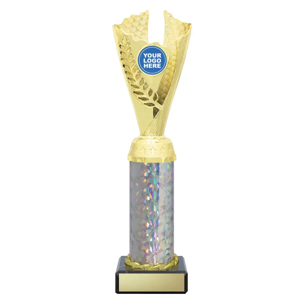 Visually stunning design of cup trophies with central space for your centre insert. Choose from multiple colour combinations to best suit the trophies for your event or competition. Iconic wreath cup celebrates the achievements of your award winners.