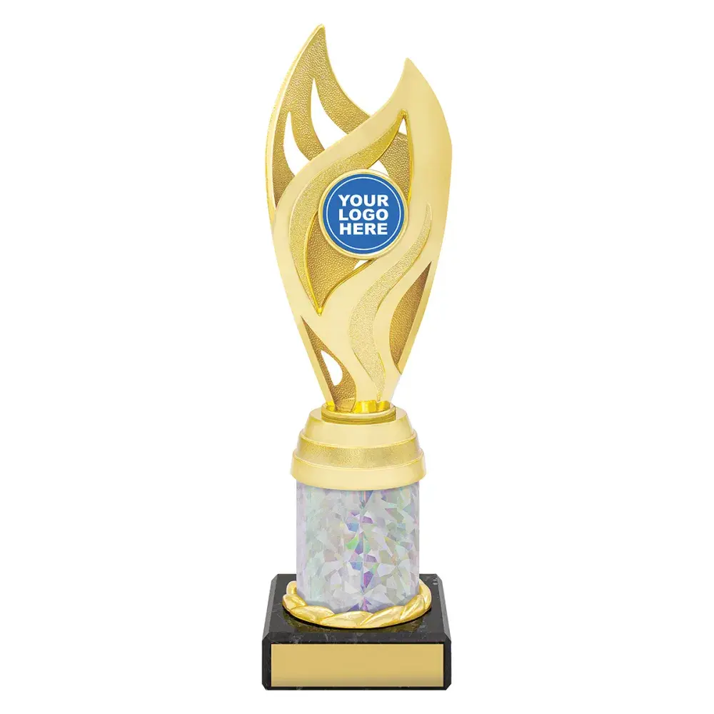 Vision Cups present an alluring flame like design with central position for your custom or club logo. Cups are available in many different colours to perfectly suit your award needs.