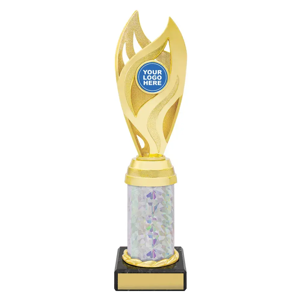 Vision Cups present an alluring flame like design with central position for your custom or club logo. Cups are available in many different colours to perfectly suit your award needs.