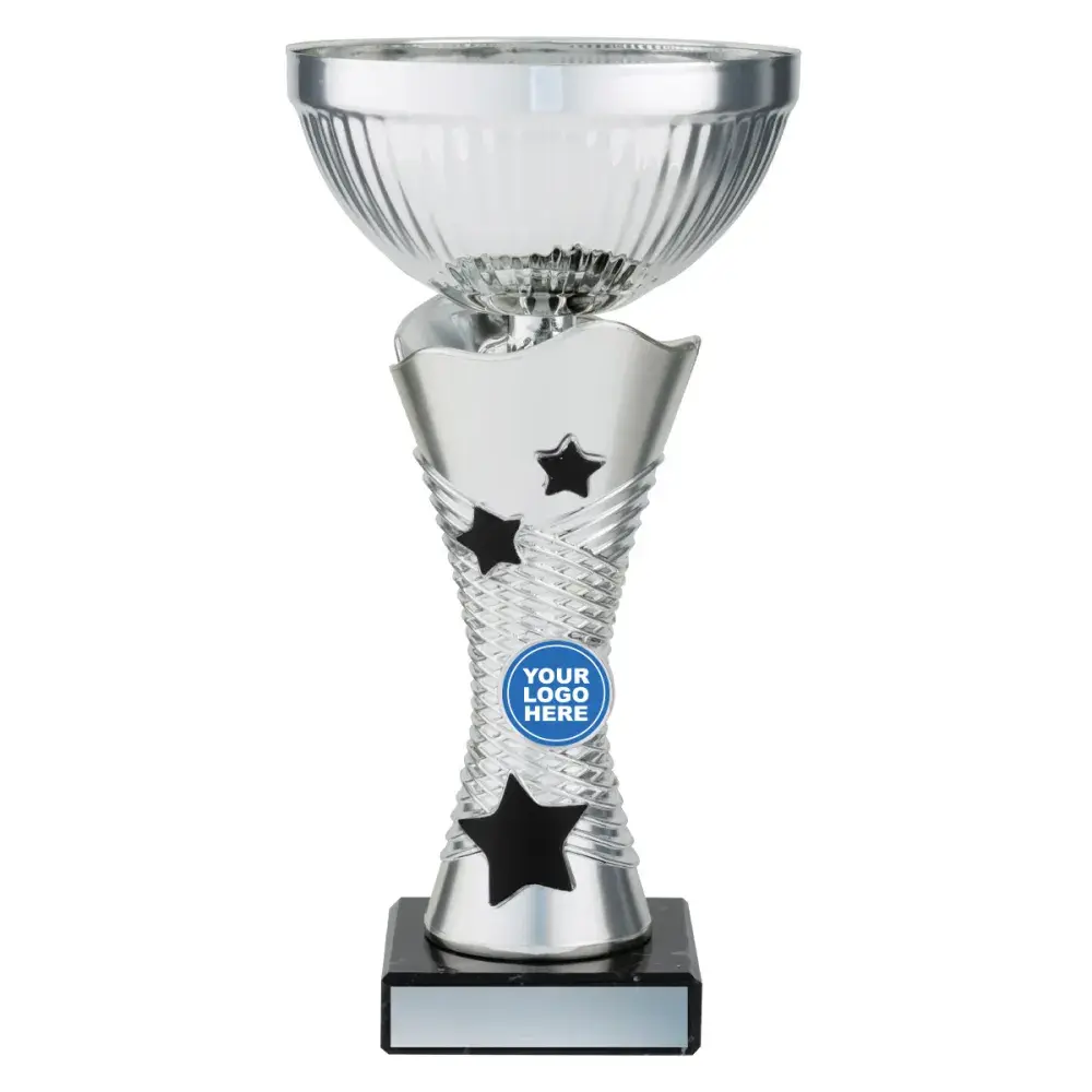 Dazzling design of cup with star pattern and multi-coloured elements. Available in 3 sizes. Metal bowl and marble base elevates this cup award.