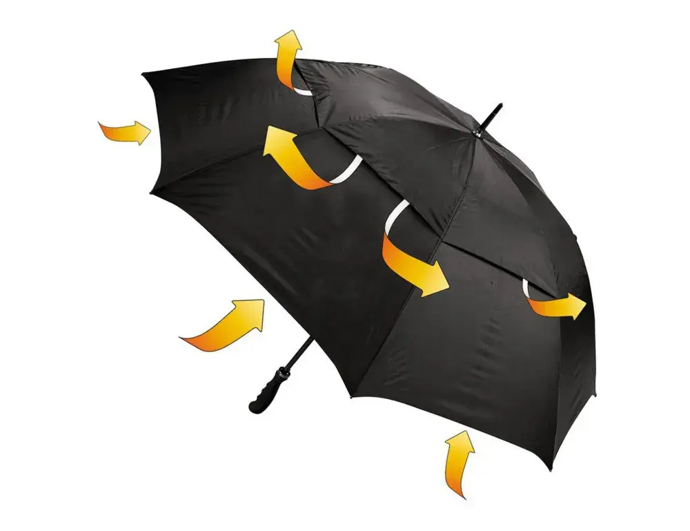 Looking for a “top of the range” 8 panel umbrella that will stand up to the elements, then look no further. Blizzard is made from upmarket premium grade matt finish 190T Pongee and uses a super-tough yet flexible all-fibreglass frame designed to protect you in the most ferocious of storms. It also incorporates a wind proof vented canopy, netted interior (to prevent canopy distortion), non-slip rubber tip, automatic open function, two extra wide velcro ties, a matching pouch with carry strap and rubber-feel “gripper” handle. Available in black, navy. blue and red.