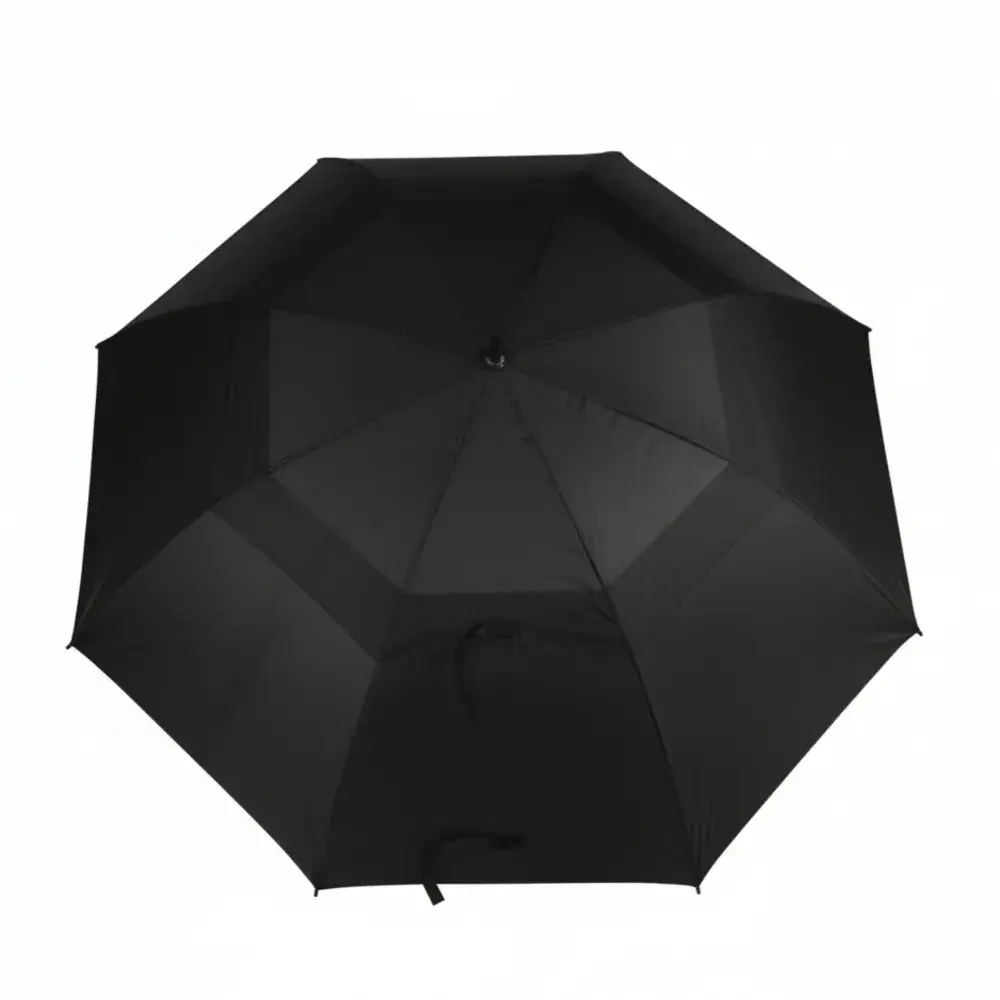 Equipped with a strong fibreglass shaft for lightweight durability. | Double-vented canopy enhances wind resistance and sun protection. | Sturdy non-slip handle ensures a secure, comfortable grip in any condition. | Large coverage area ideal for golf, events, or everyday rain use. | Stylish and practical—great for personal use or branded promotions.
