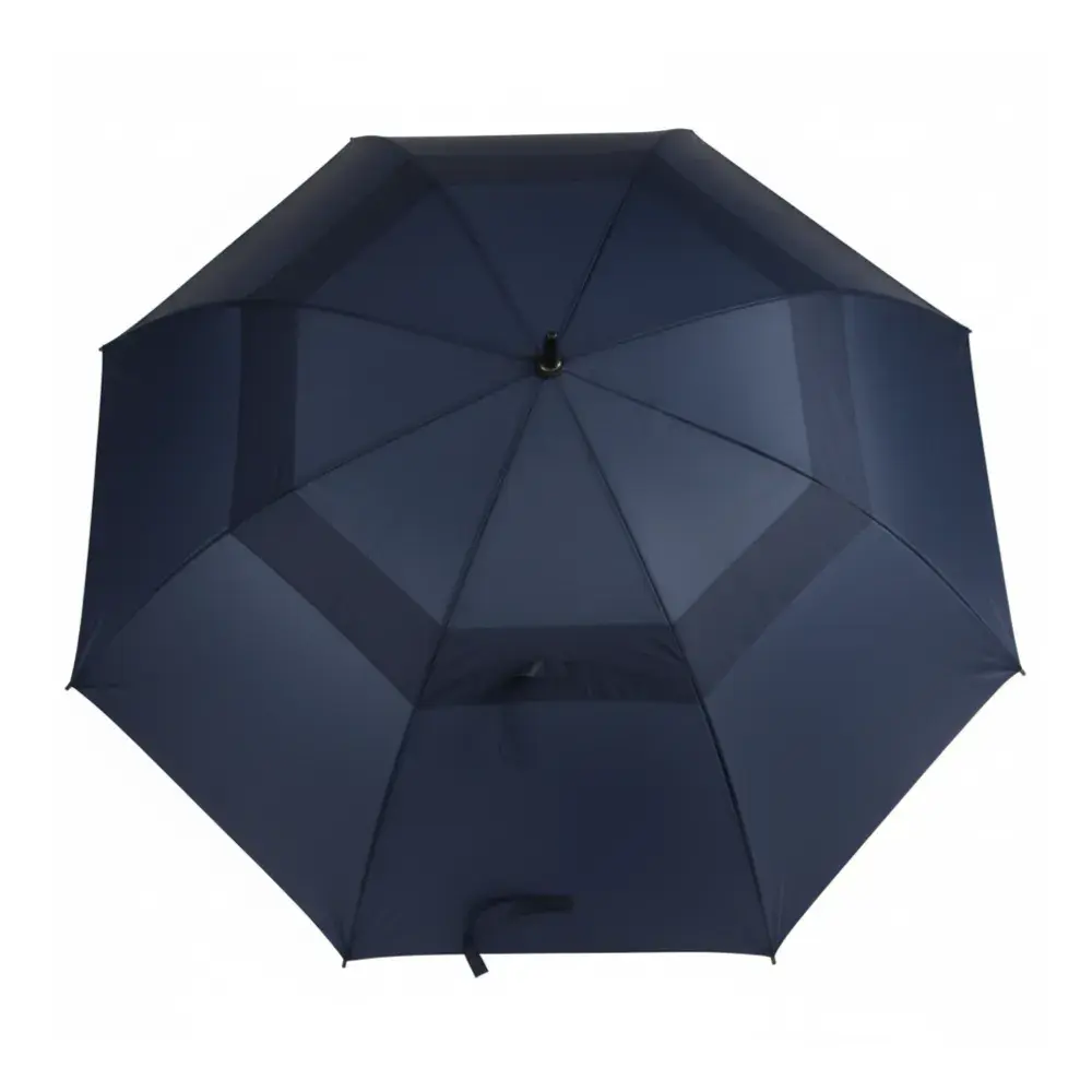 Equipped with a strong fibreglass shaft for lightweight durability. | Double-vented canopy enhances wind resistance and sun protection. | Sturdy non-slip handle ensures a secure, comfortable grip in any condition. | Large coverage area ideal for golf, events, or everyday rain use. | Stylish and practical—great for personal use or branded promotions.