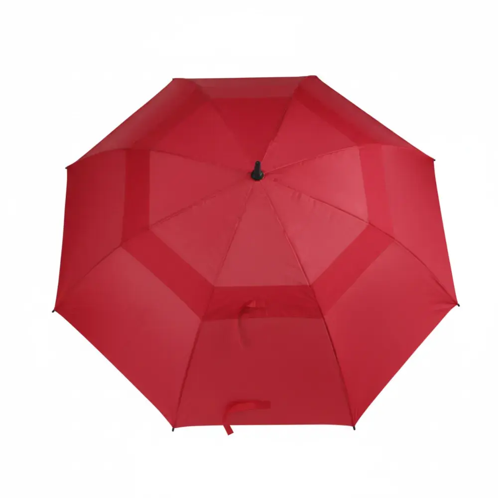 Equipped with a strong fibreglass shaft for lightweight durability. | Double-vented canopy enhances wind resistance and sun protection. | Sturdy non-slip handle ensures a secure, comfortable grip in any condition. | Large coverage area ideal for golf, events, or everyday rain use. | Stylish and practical—great for personal use or branded promotions.